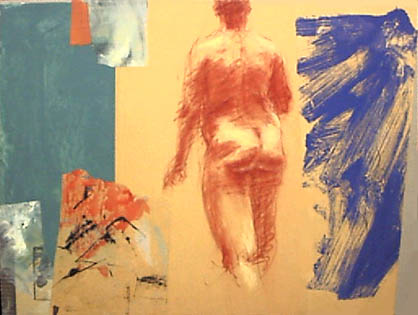 collaged on panels, painted into, drawn on. Passages play off each other.