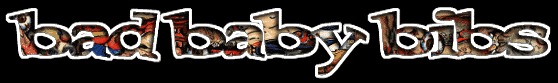 Well, if you're going to have them you have to clothe them! So I've come up with the world's most politically incorrect line of BAD BABY BIBS! Just think how cute your little drool 'n poop machine will look sportin' one of these at the family BBQ. Give the kid a bad attitude from day one!